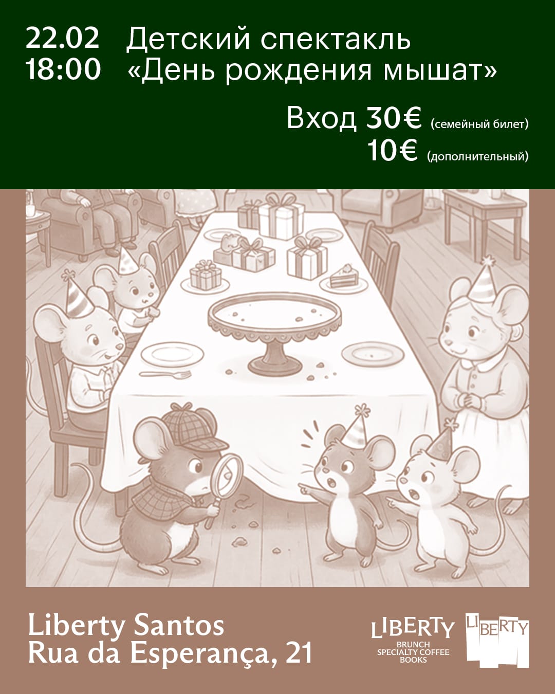 В огромном семействе мышей большое событие – у самых маленьких мышат День рождения! Вся семья собралась на праздник: дом украшен, праздничные колпаки надеты, но вот торт вдруг взял и исчез!